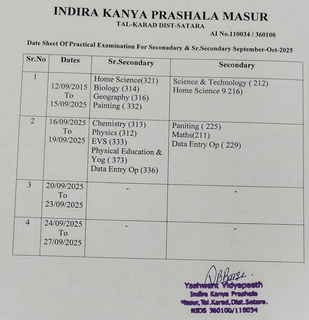 Time-Tables for NIOS Oct-Nov 2025 Practical Examination